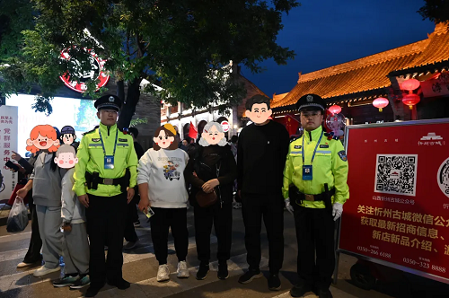 “国庆”“中秋”两节期间,来自五湖四海的游客慕名而来,赏忻州古城美景、品秀容文化。在排队拥挤的小吃街,在威严耸立的城墙上,在熙熙攘攘的酒吧街,忻府公安民辅警牺牲休息时间,始终坚守岗位,用快速响应与贴心服务,全力守护游客出行平安,用担当和奉献织牢古城平安防护网。