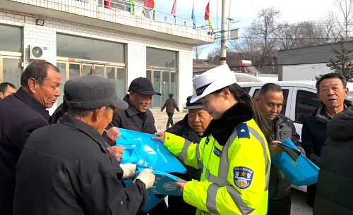 春运大幕已启,平安才是归途!为筑牢农村道路交通安全“防护墙”,切实拉满农村群众的交通安全意识,从源头减少农村道路交通事故,守护大家春运出行一路平安,2月5日,五台县公安局交管大队综合中队的宣传民辅警,走进国道338沿线的大王村、小王村,开展“春运交通安全进农村”主题宣传活动,用接地气的宣讲、实打实的举措,让交通安全知识走进千家万户。
