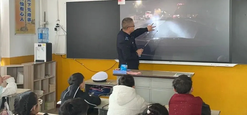 活动中,交警结合中小学生日常出行特点,用生动易懂的语言重点讲解步行安全、文明骑行、规范乘车等交通安全知识。通过播放典型事故警示教育片、开展现场互动问答等形式,让安全知识入脑入心,引导学生在参与中掌握“一盔一带”“被看见才安全”等出行常识,切实提升自我保护意识和守法理念。此次活动让安全文明出行的种子在孩子们心中生根发芽。