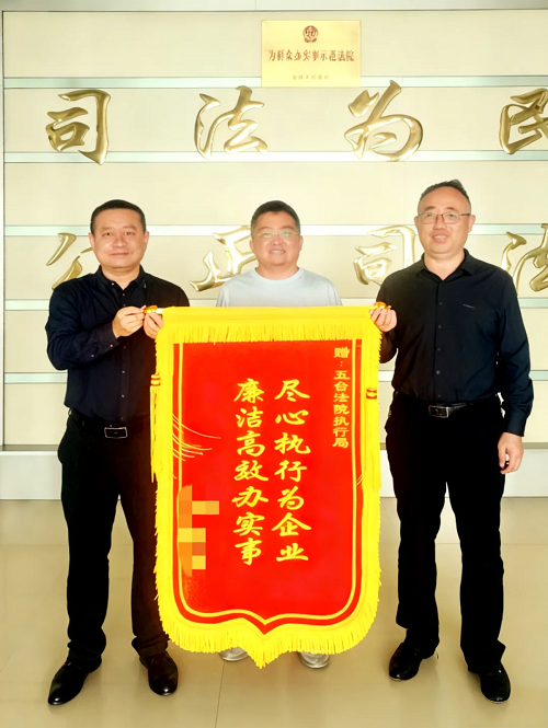 “感谢执行团队尽心尽责,不仅高效帮我们解决了纠纷,还始终坚守廉洁底线,真正为企业办实事!”最近,五台县某银行工作人员将一面印着“尽心执行为企业,廉洁高效办实事”的锦旗送到五台县人民法院执行局,以此表达对执行法官敢于亮剑,成功为企业追回不良贷款的诚挚谢意。